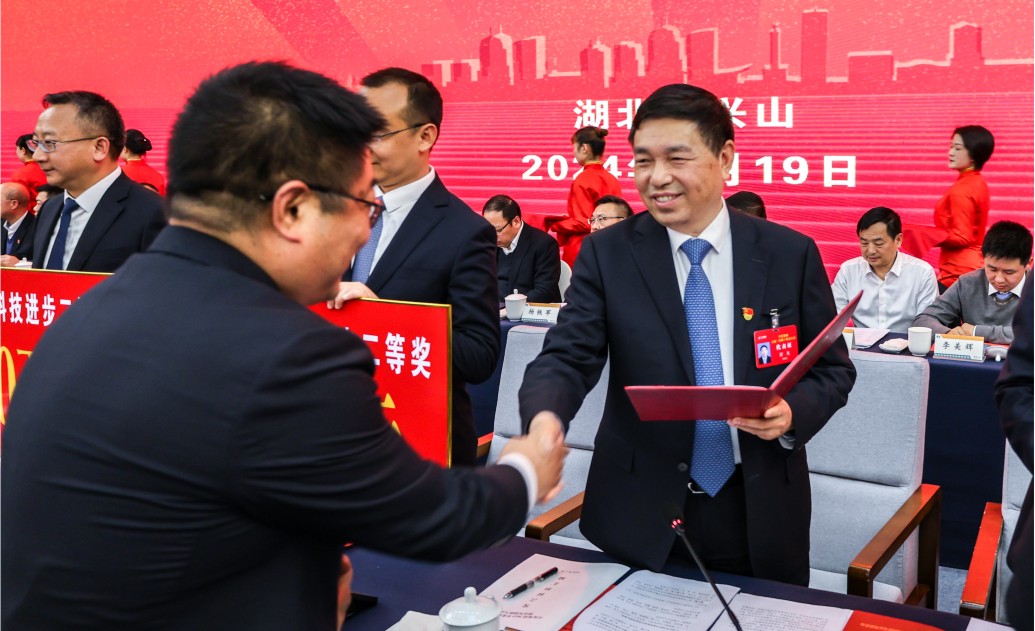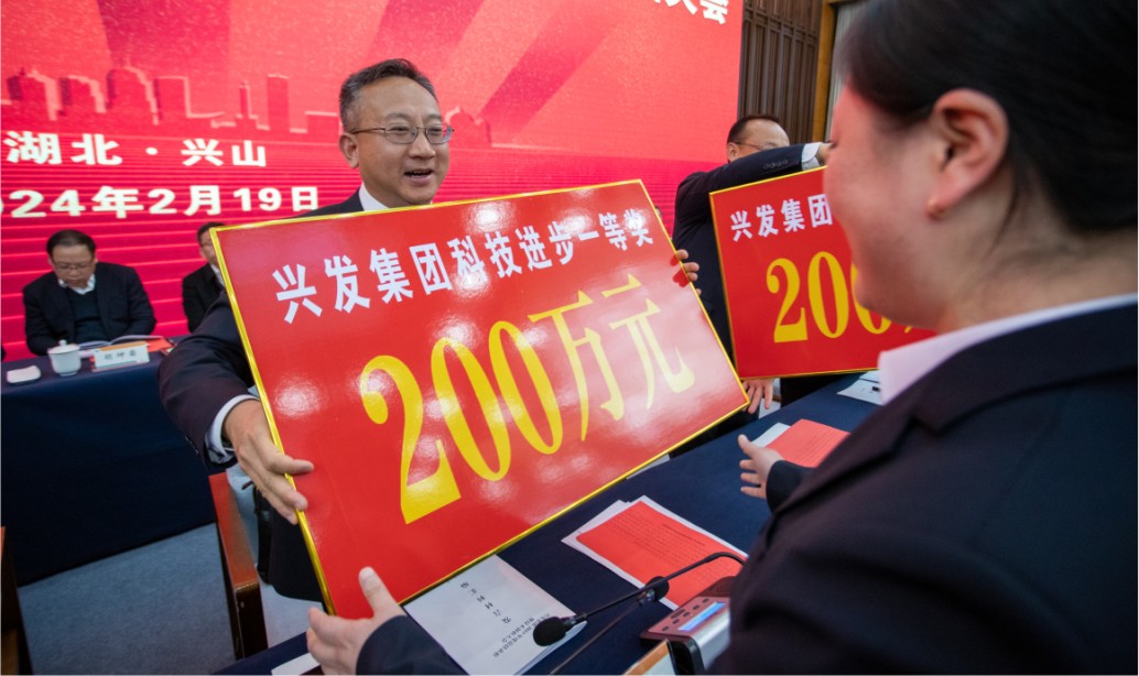 大会由兴发集团党委副书记、股份公司总经理舒龙主持。兴发集团党委副书记易行国宣读表彰文件。会上向获得科技进步奖的团队重奖1400万元,单项团队奖金最高达200万元,对兴发集团“友谊勋章”获得者、60名劳动模范、811名五好职工进行了通报表彰,8名员工代表上台作交流发言。